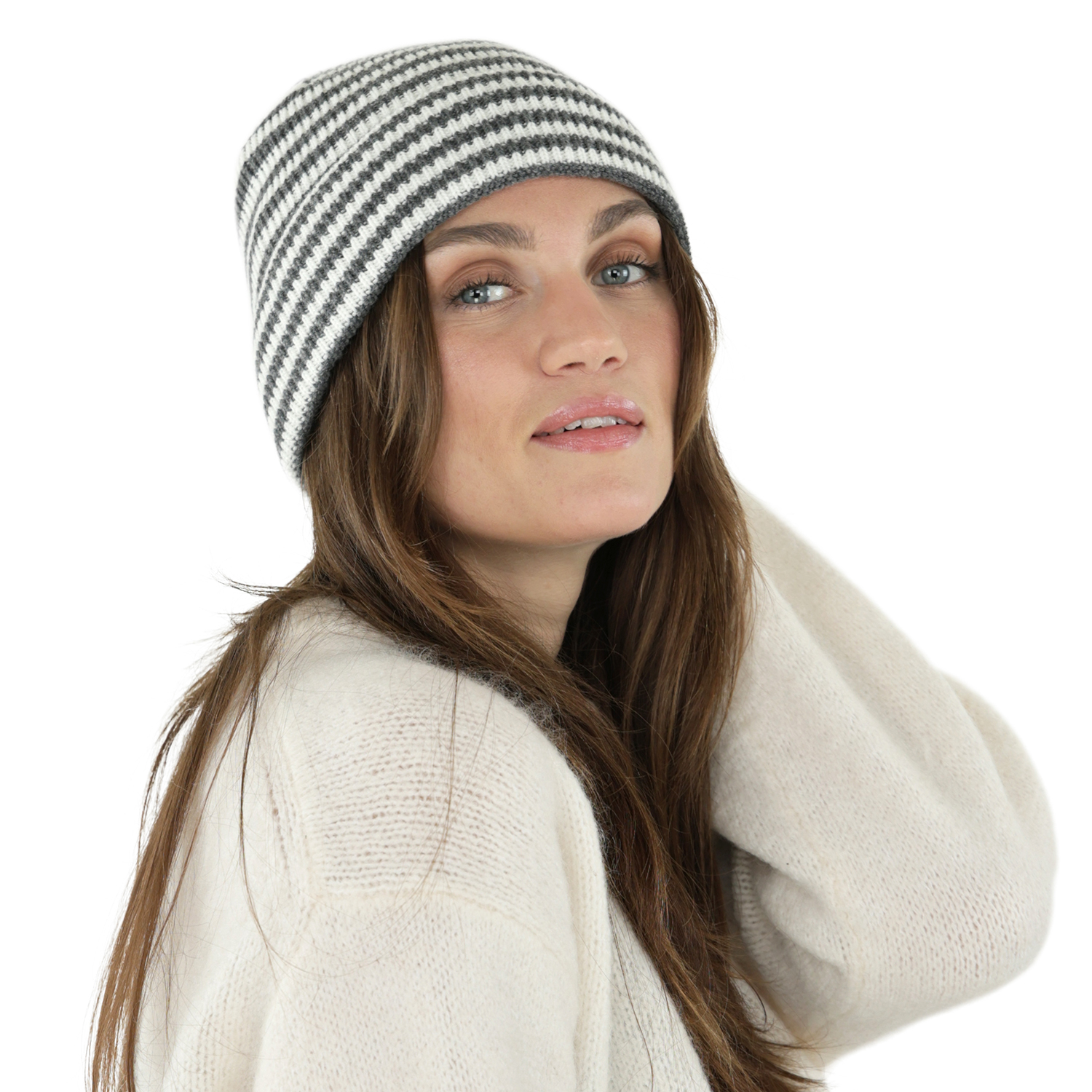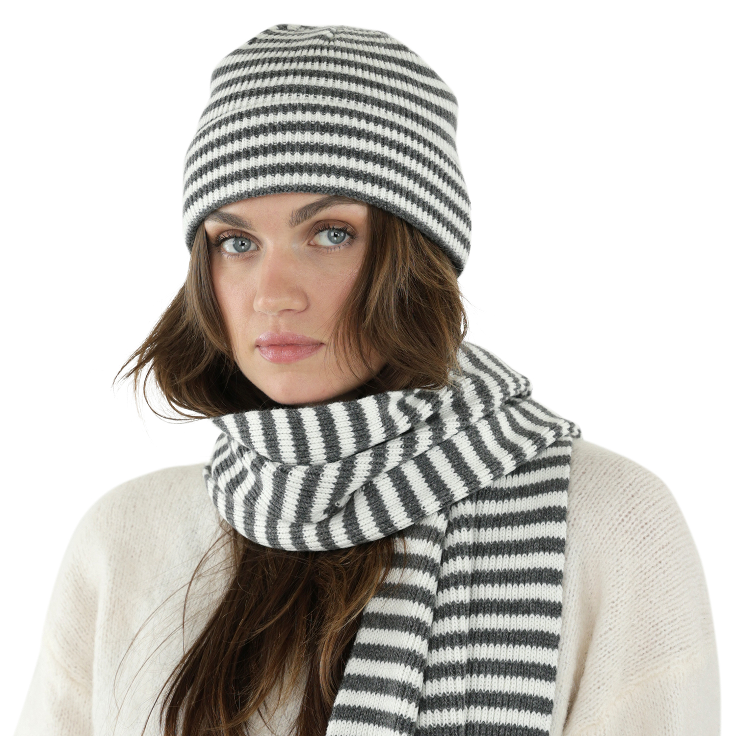 Beanies - Gårda Saint-Gervais Striped Wool Mix Beanie (mørk grå/hvit)