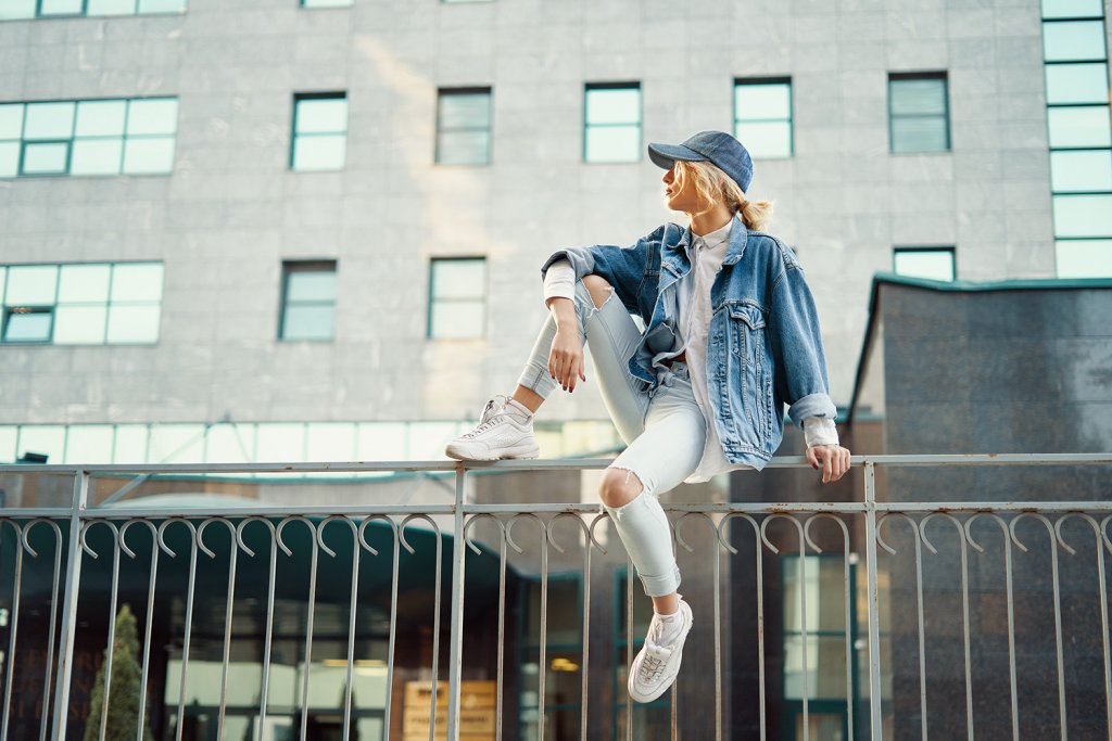 • Fremstilt av bomull (denim)
