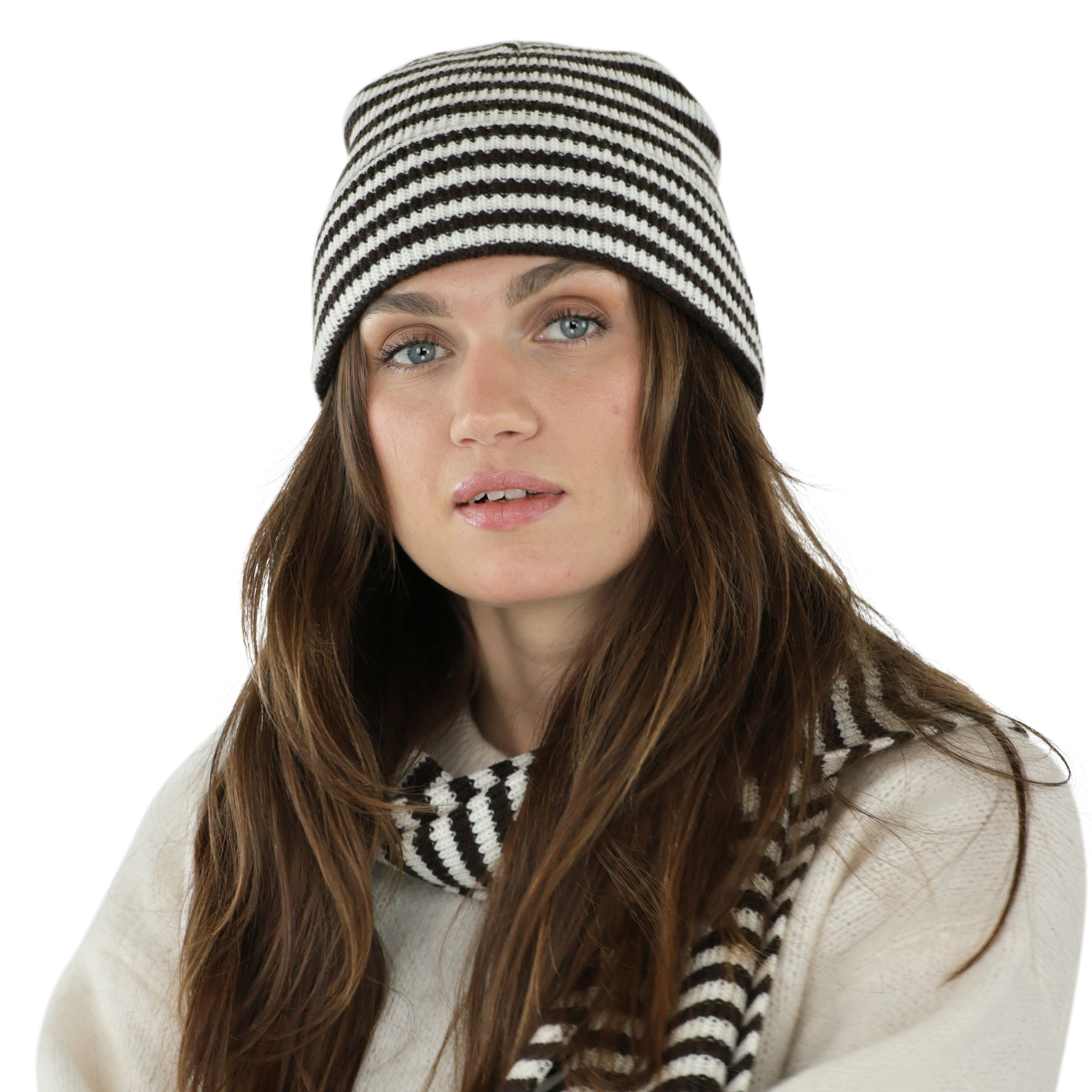 Skjerf - Gårda Engelberg Striped Wool Mix Scarf (brun/hvit)