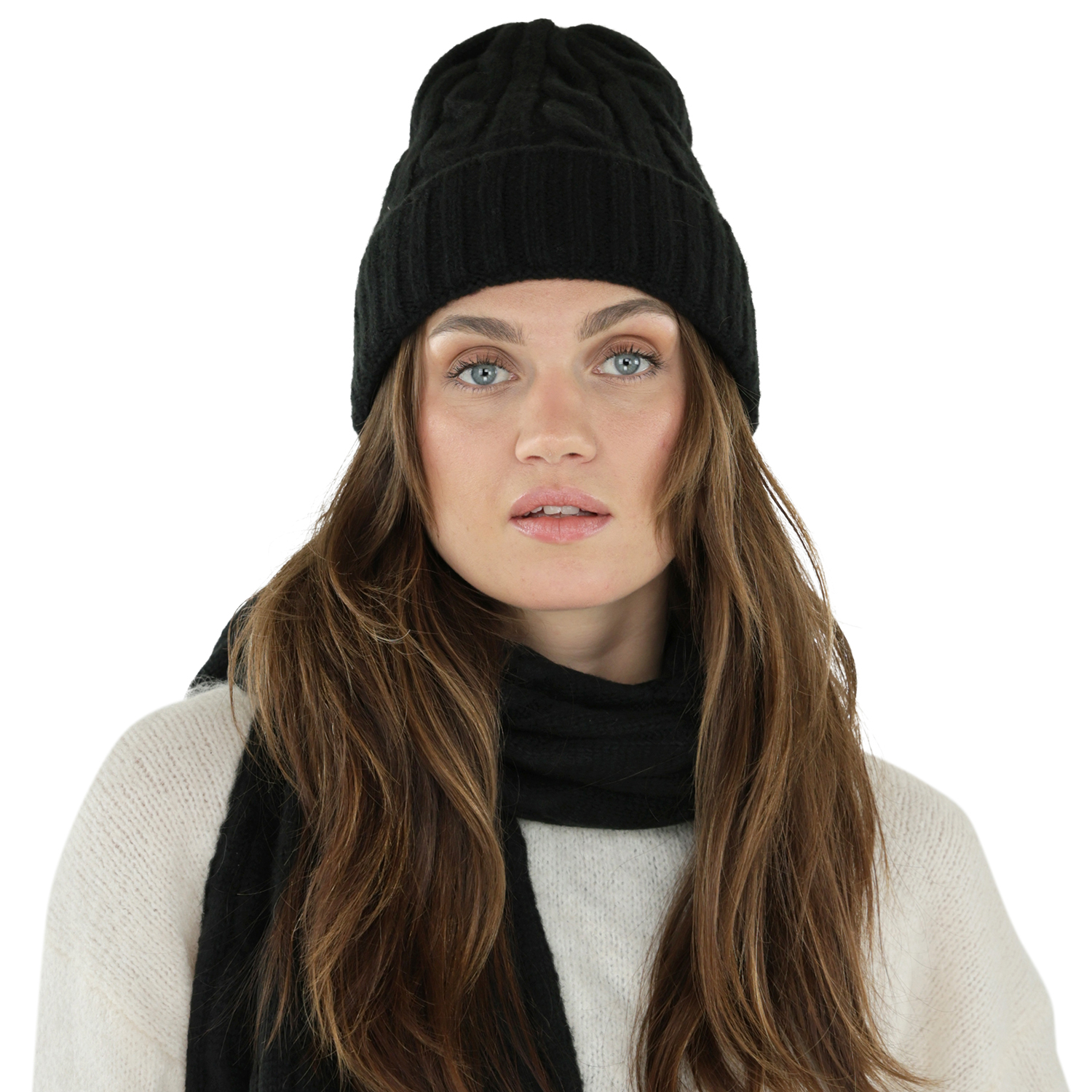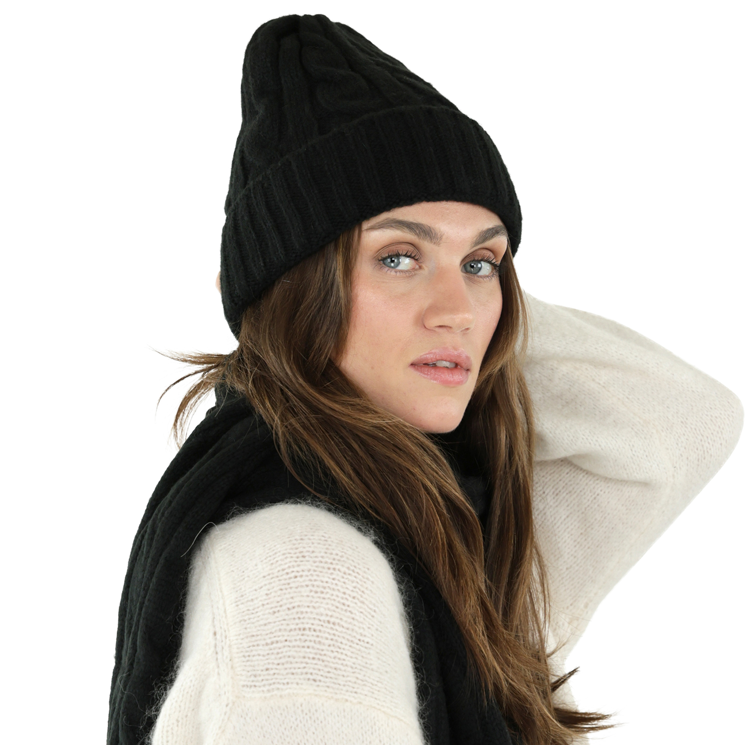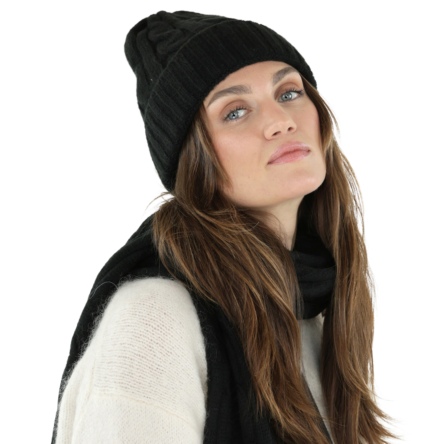 Skjerf - Gårda Sölden Cable Knit Wool Mix Scarf (svart)