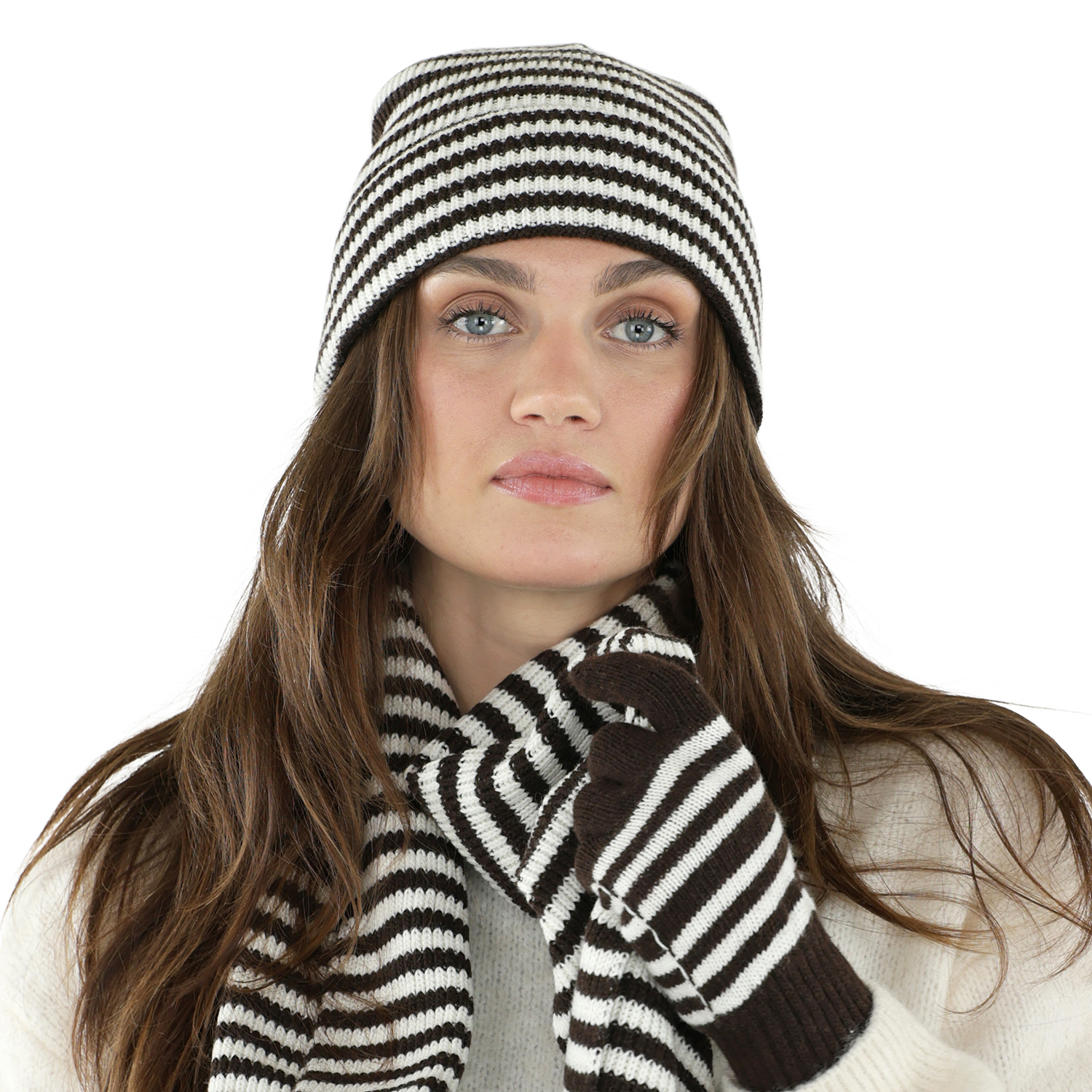 Hansker - Gårda Cavalese Knitted Wool Mix Gloves (brun/hvitt)