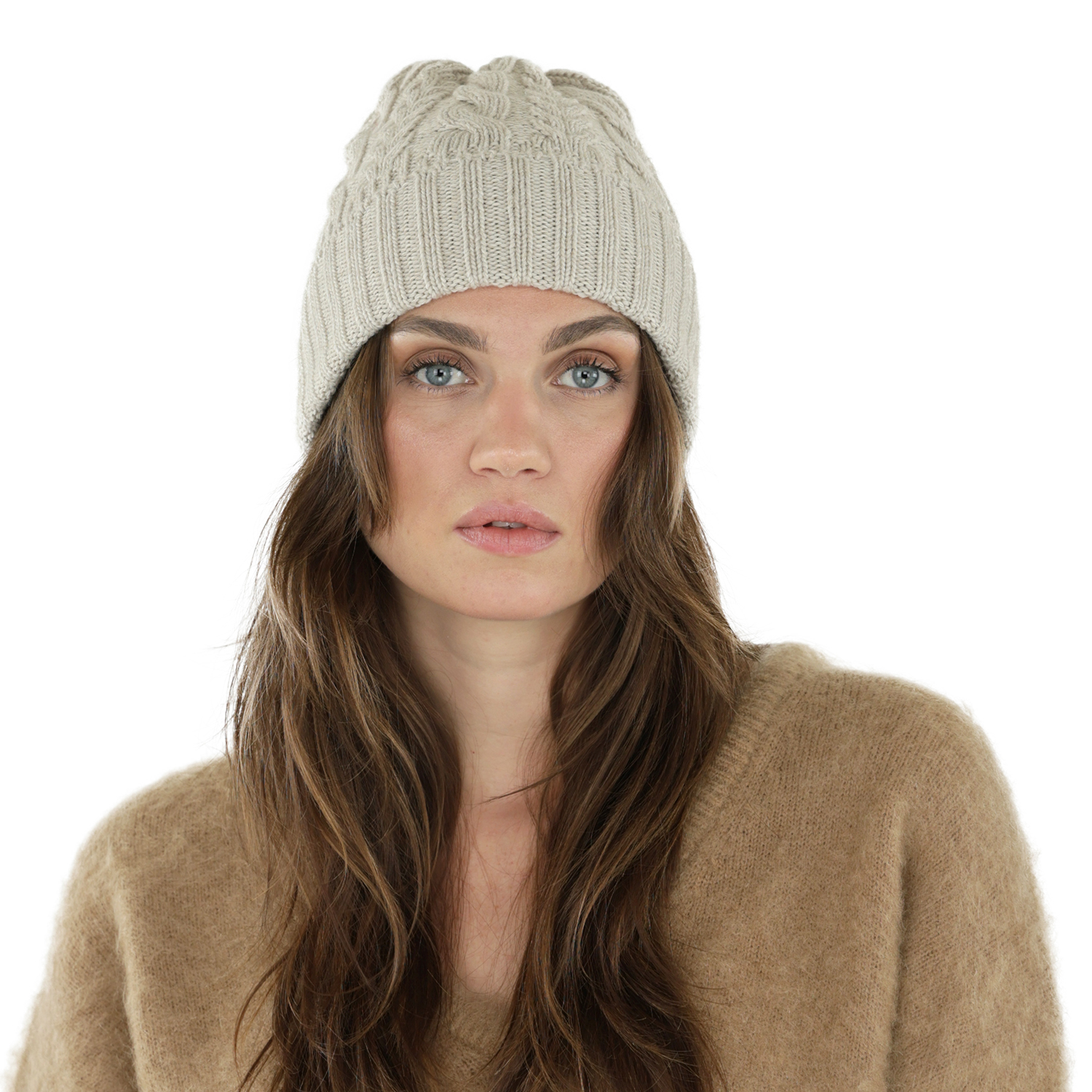 Beanies - Gårda Villars Cable Knit Wool Mix Beanie (beige)